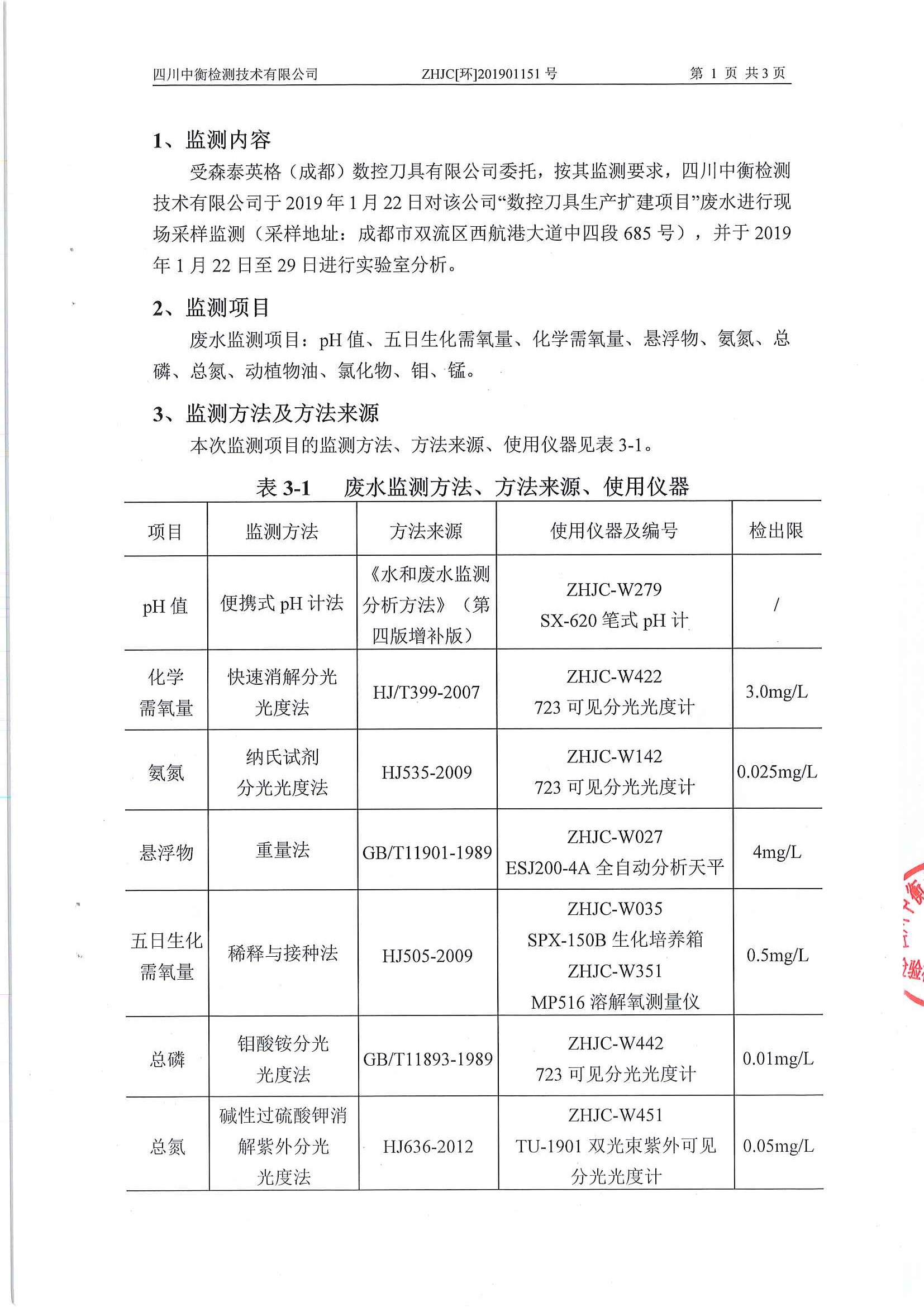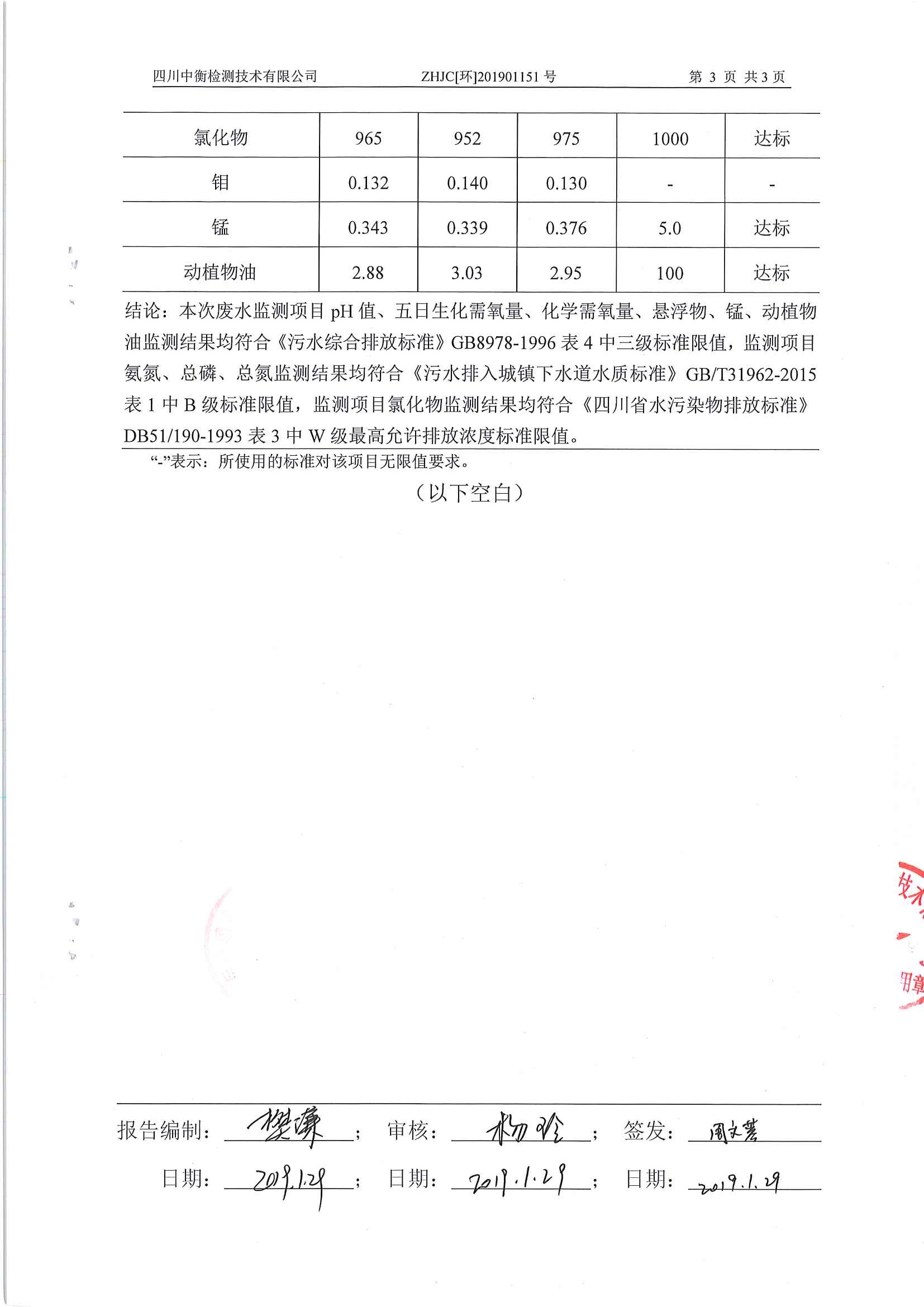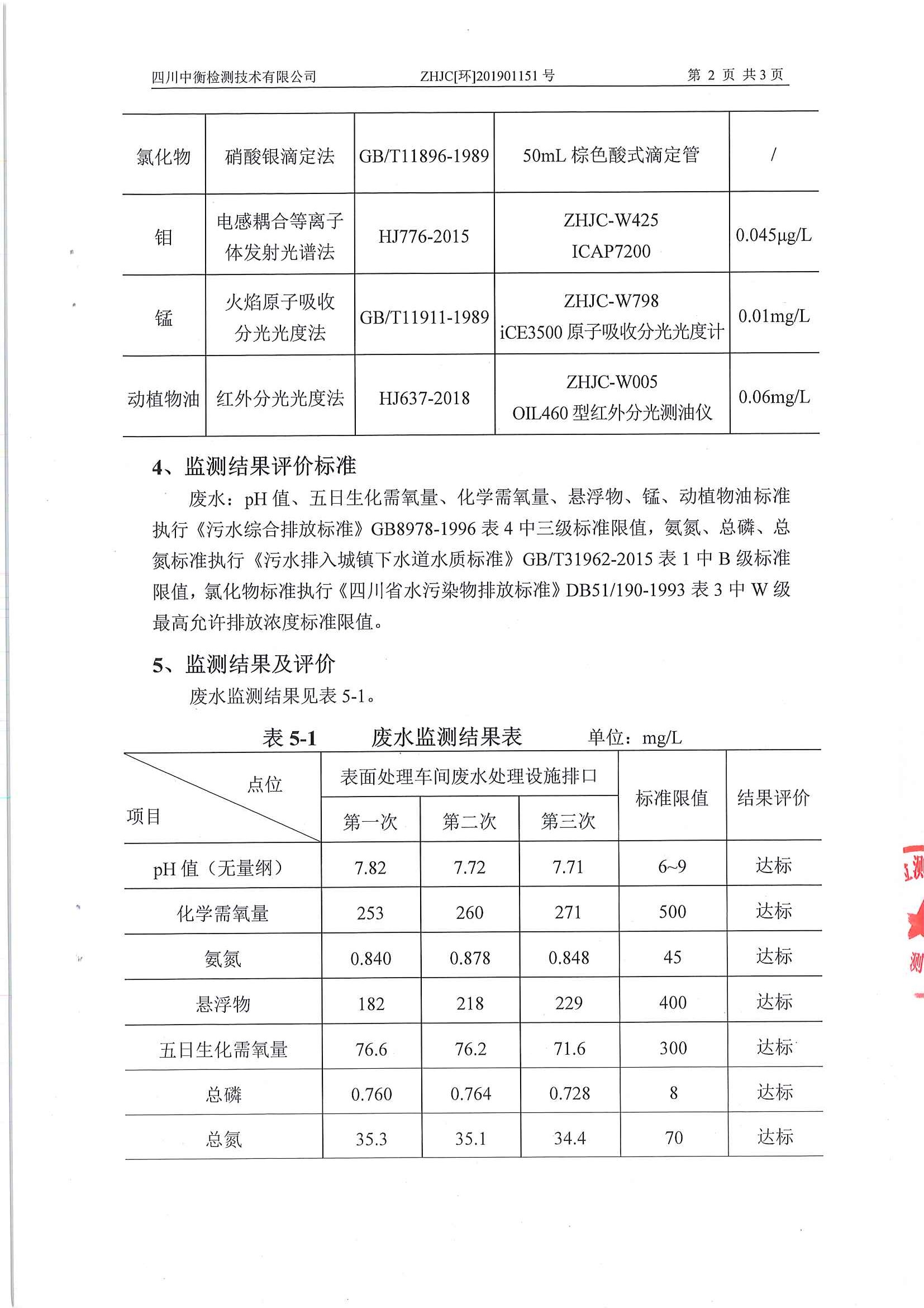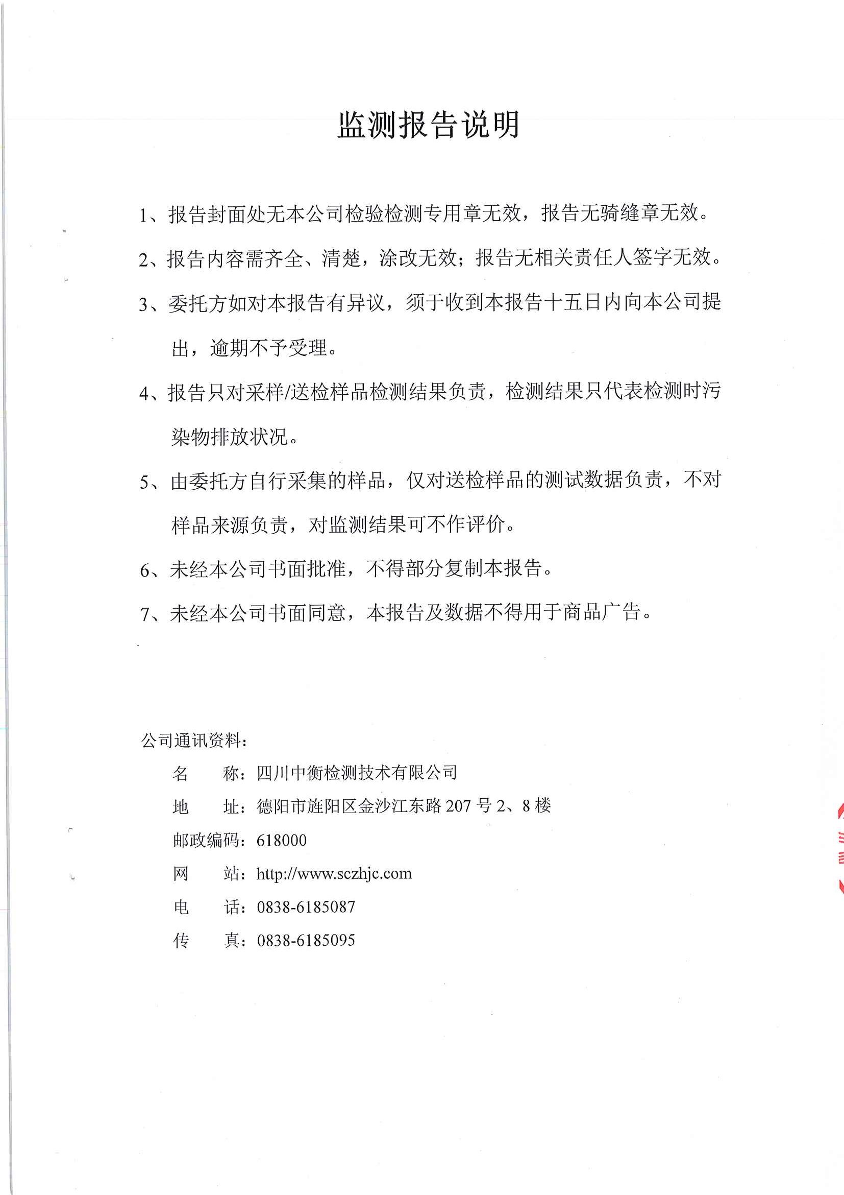 四川中衡检测技术有限公司检测报告