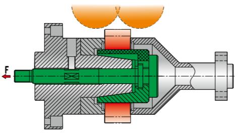 特 点:机床拉杆自动胀紧;粘接夹头定心;轴向端盖压紧;端面及径向跳动≤0.01mm。